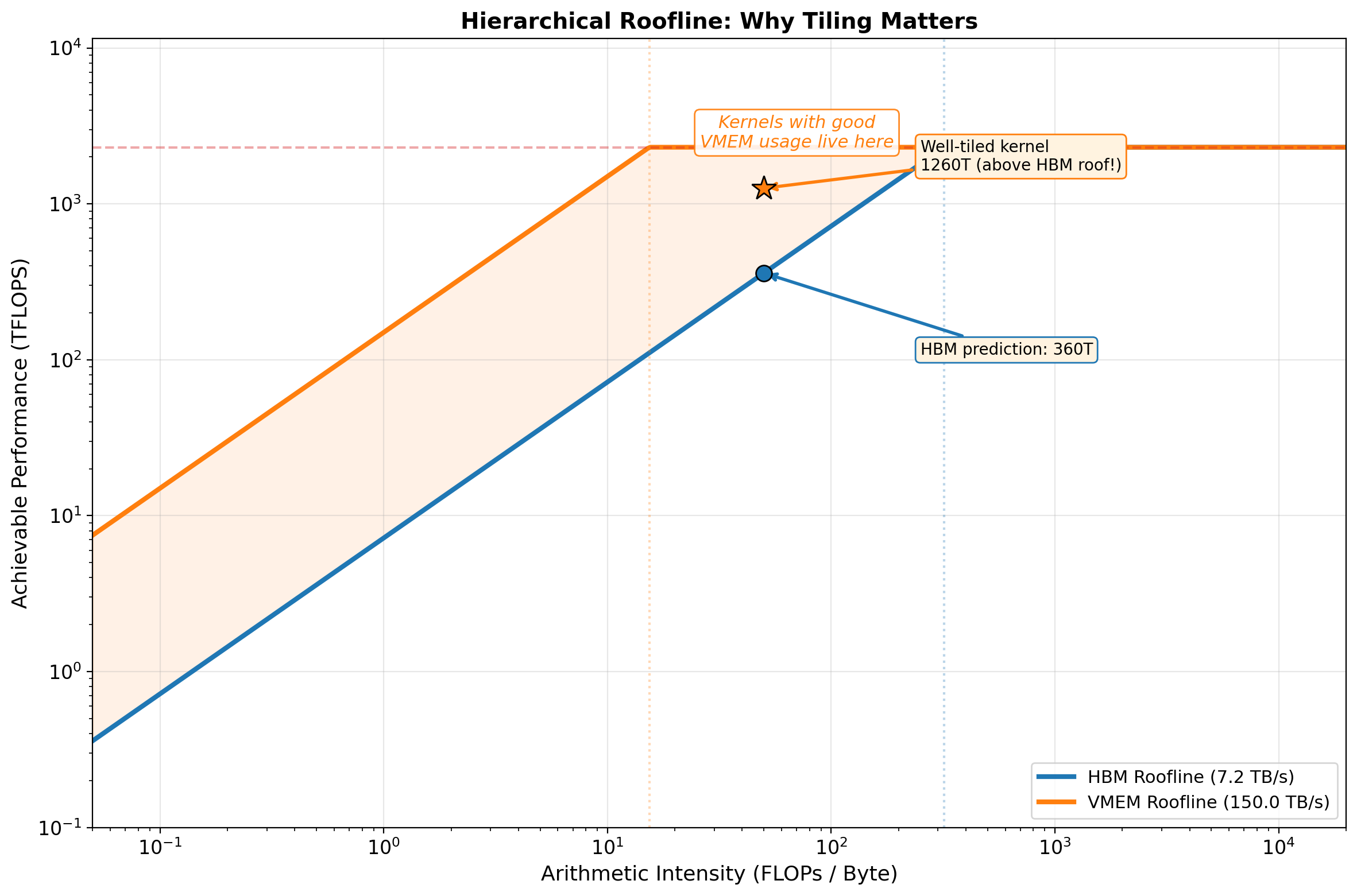 ax.fill_between(ai_vals[shade_mask], unfused_perf, roofline_vals[shade_mask],