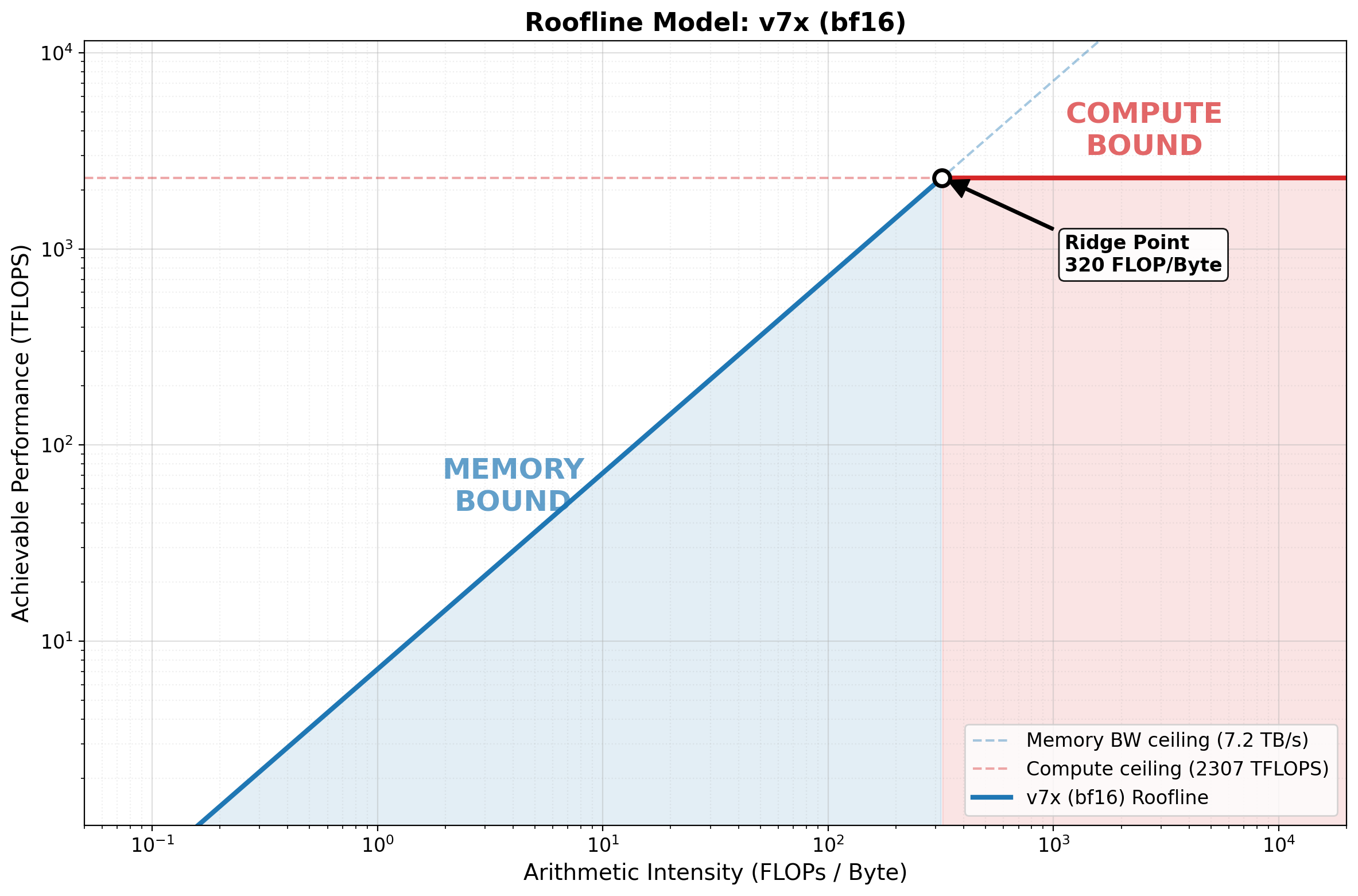 ax.text(ridge * 1.1, hw['peak_flops'] * 0.002, f'Ridge ({ridge:.0f})',
